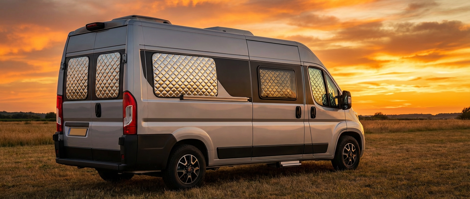 Custom-fit thermal window covers for Fiat Ducato, Peugeot Boxer, Citroën Relay, VW Crafter, Mercedes Sprinter and more